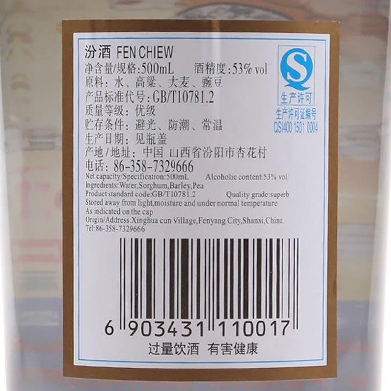 【2021年产】山西汾酒 出口波汾500ml-750ml 白酒